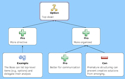 The alternatives (all images produced in bCisive Online)Both top-down and bottom-up thinking cut across the critical / creative thinking divide: